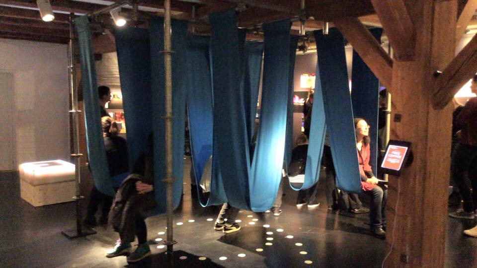 展示空間に再現されたファブリックを使ったブランコ